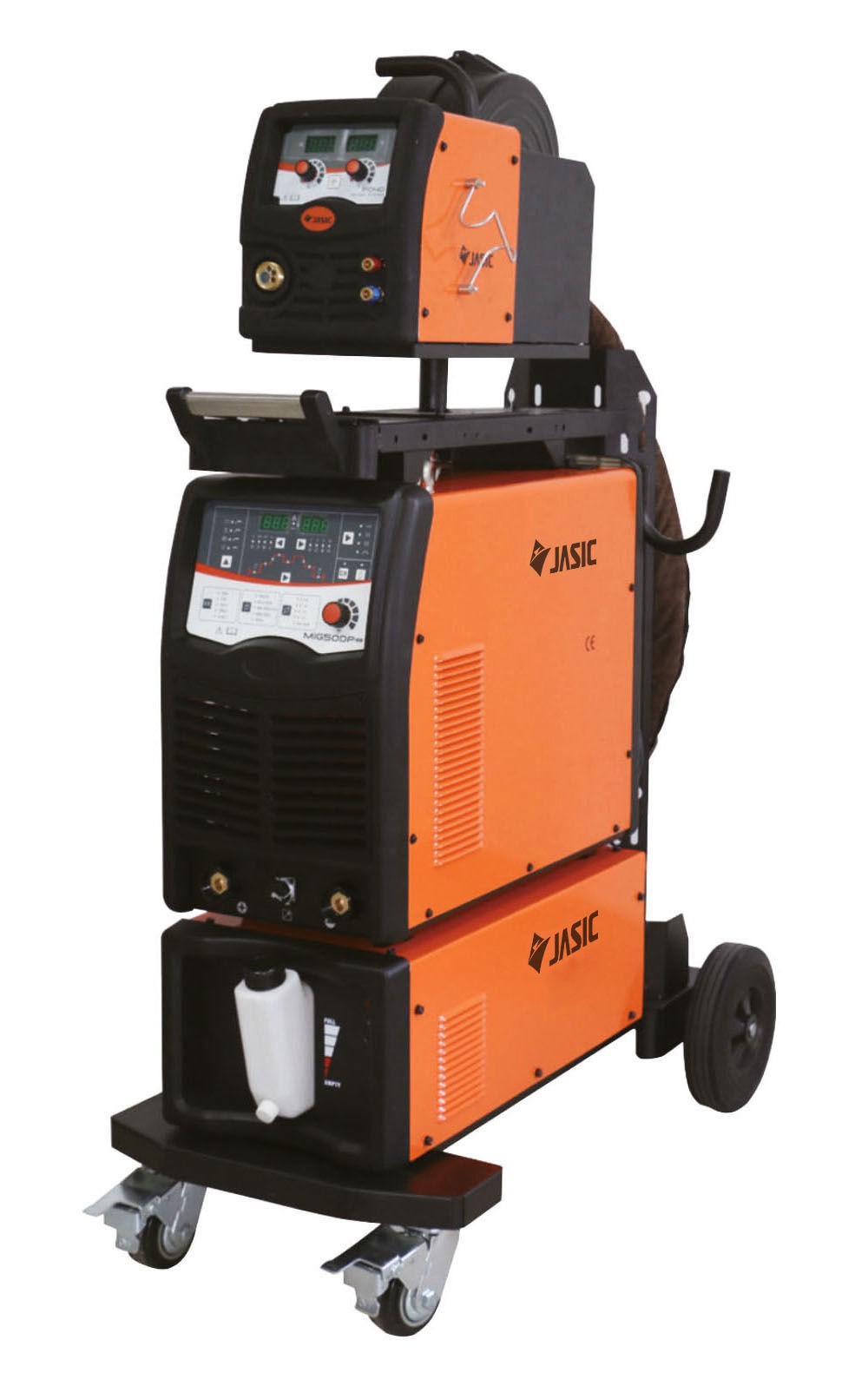Equipo MIG pulsado para máximo control del arco en producción industrial.